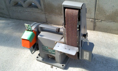 現在の使用工具(道具)は日立の小型ベルトグラインダーBGM50を少し改造して
