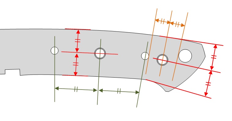 ・R部分はM5ワッシャーを当てて罫書くが、罫書き線が狙ったラインを通るように