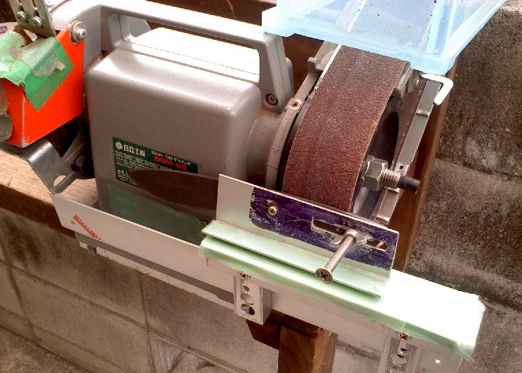 上のプラ箱は削った粉が自分に掛かって来ないようにカバーするため。