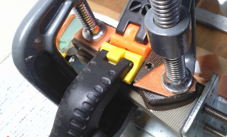 接着剤を塗って反対側のハンドル材を貼り、硬化待ち・・・