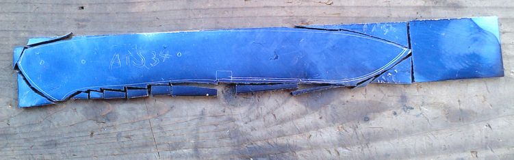 バイメタルの金鋸でここまで切り出し、ベルトグラインダーで整えます。