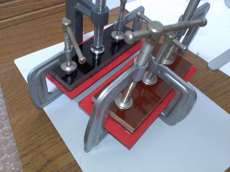 私の残り少ない赤のファイバースペーサー0.5mm厚のを接着。
