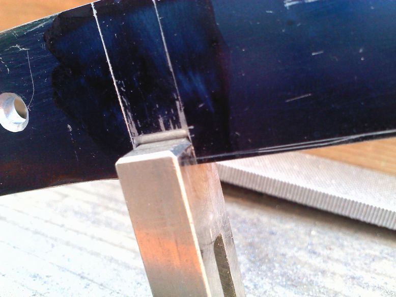 全てヤスリでブレードを削る場合は、ベベルストップを成形する前に
