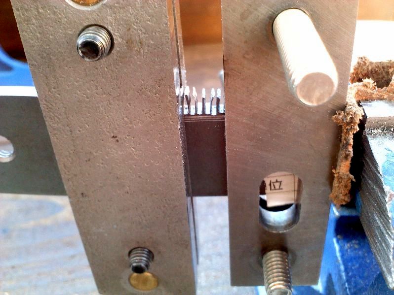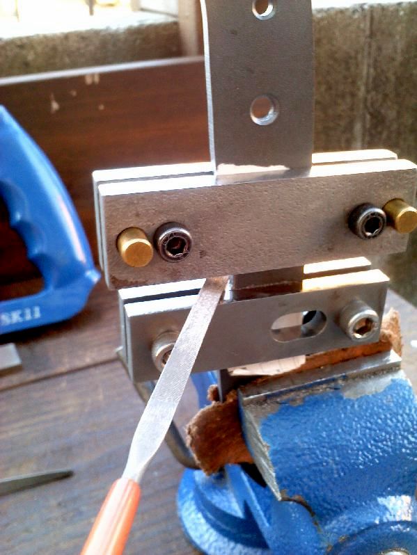 べベル面をセン掛けしつつべベルストップのキワを組みヤスリなどで